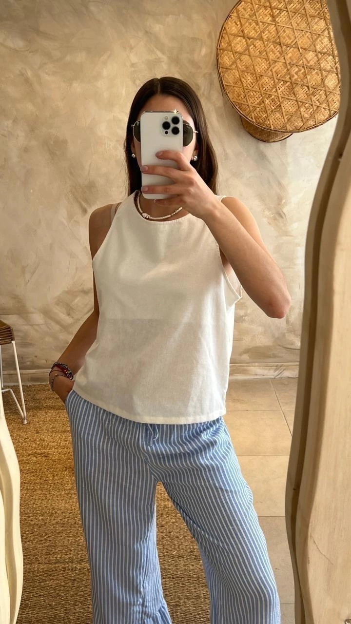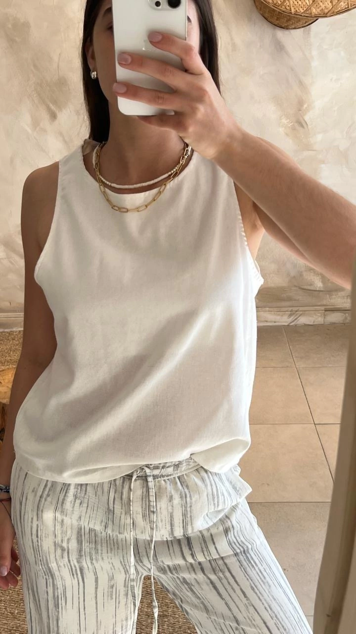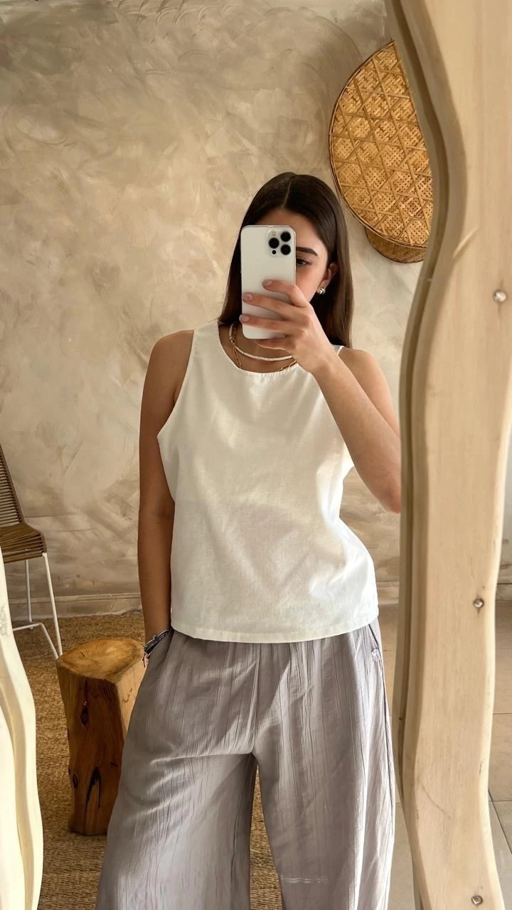 - Diseño musculosa: Corte sin mangas que realza la silueta y ofrece libertad de movimiento, perfecta para combinar con prendas de verano o capas livianas en temporadas más frescas.