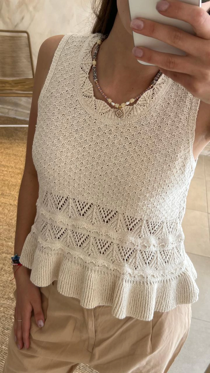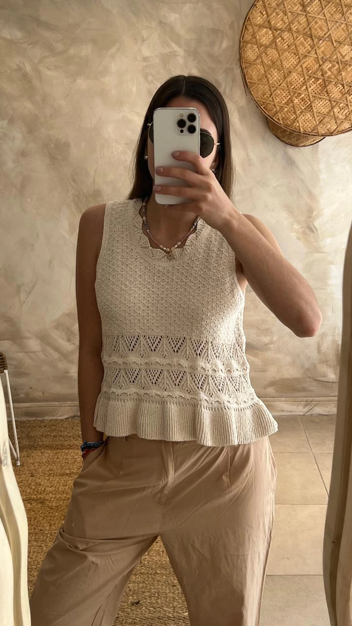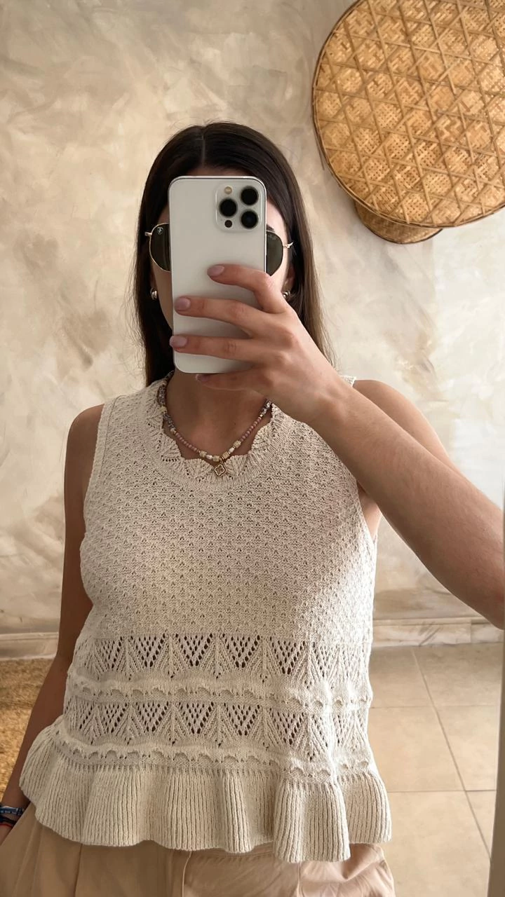 Blusa Jael: Elegancia y frescura en tejido calado beige