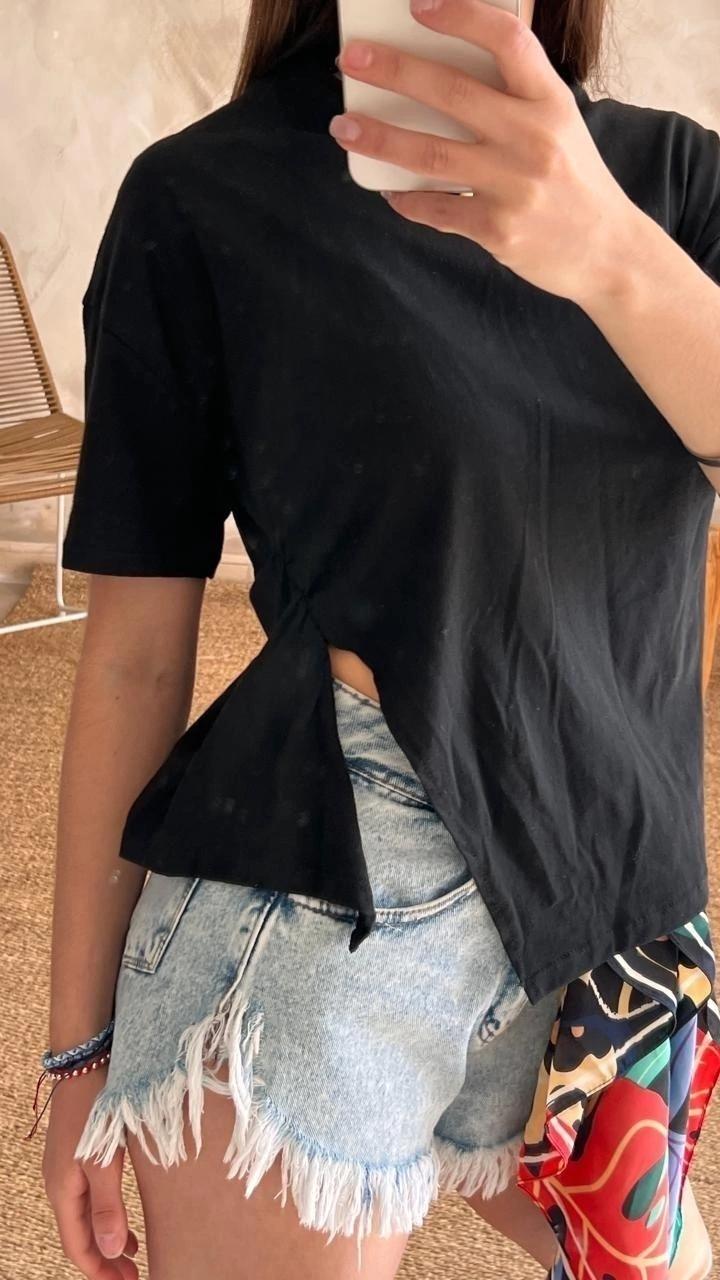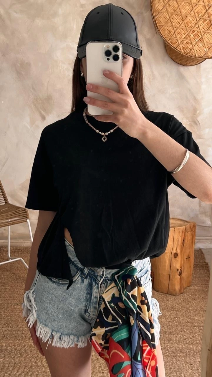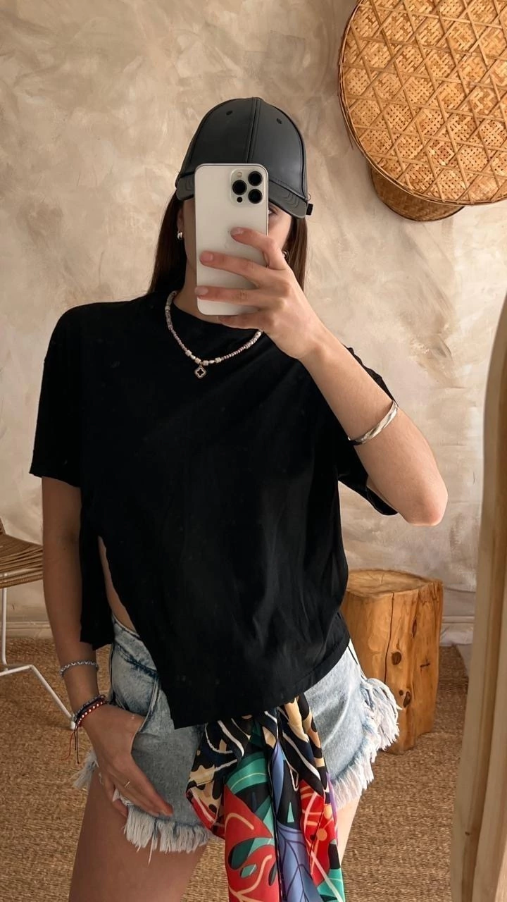 Descubrí la Remera Amada, una prenda esencial para quienes buscan combinar simplicidad y elegancia en su vestuario diario. Confeccionada en algodón negro de alta calidad, esta remera ofrece una textura suave y cómoda, ideal para todo tipo de climas y ocasiones.
