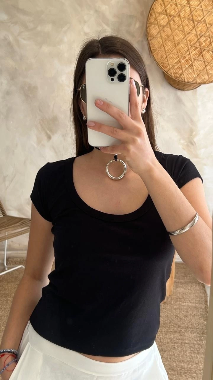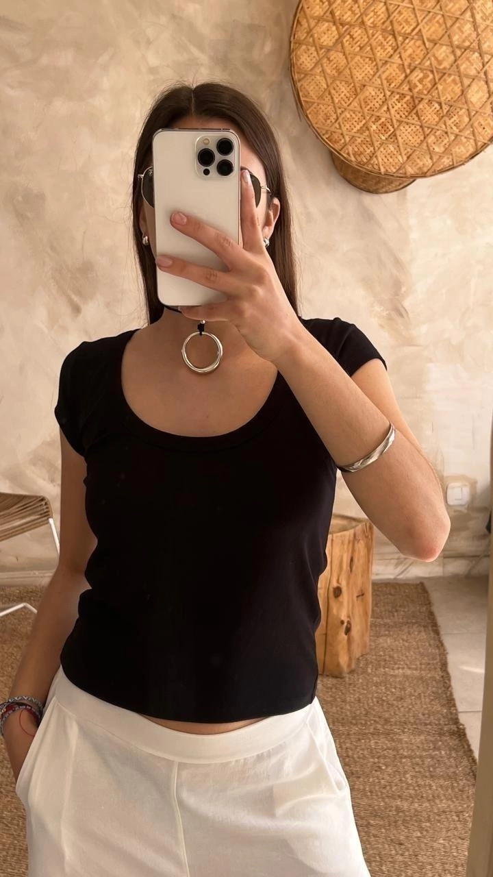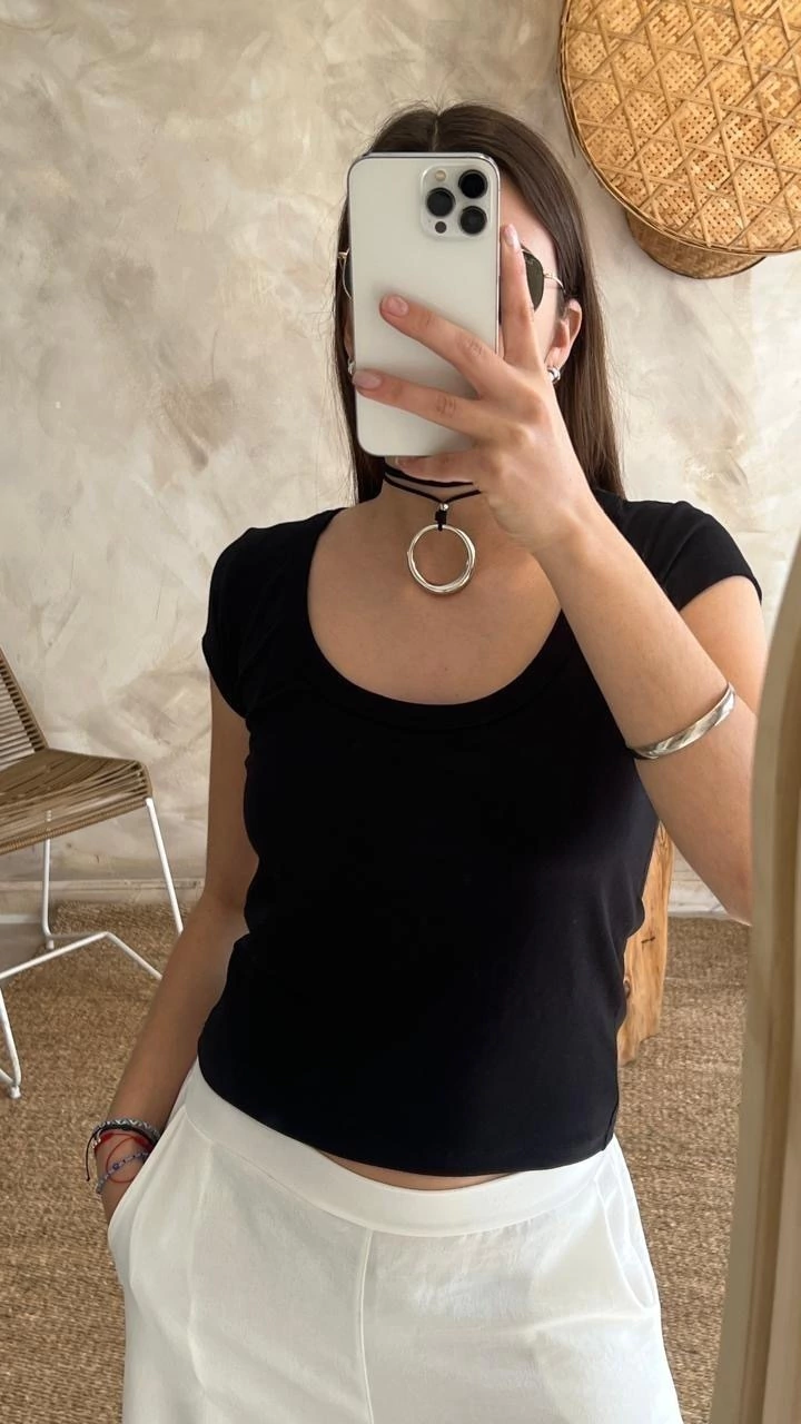 Elegí calidad, comodidad y diseño con la Remera Anselma, un básico negro que nunca puede faltar en tu vestuario.
