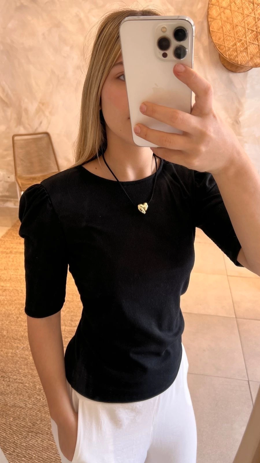 Remera Elif: Estilo y Confort con Manga 3/4 en Morley Negro