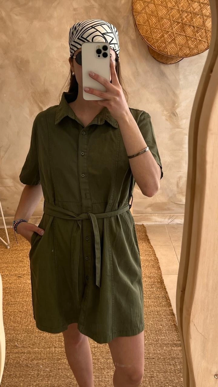 Vestido Casia: estilo y comodidad en verde militar con toque moderno